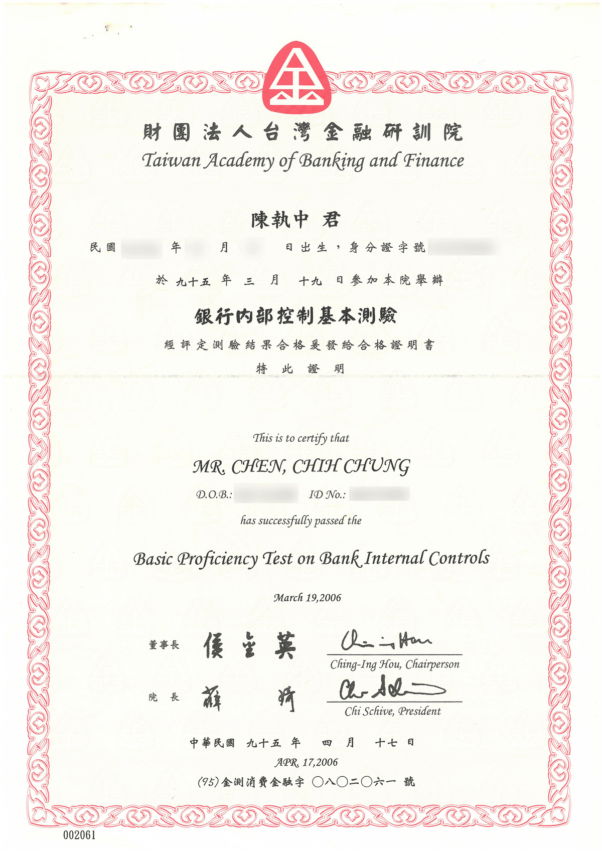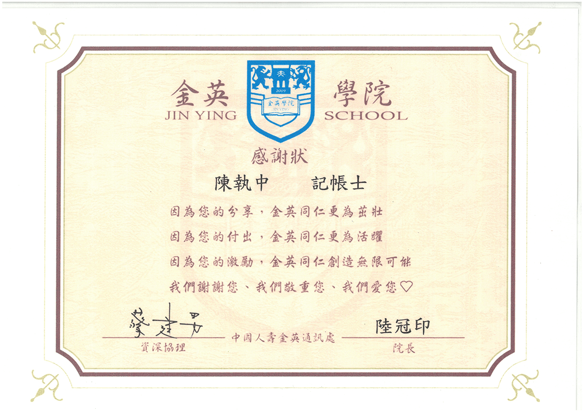 學歷:國立曾文高級家商職業學校 資格:記帳士(國家考試及格)